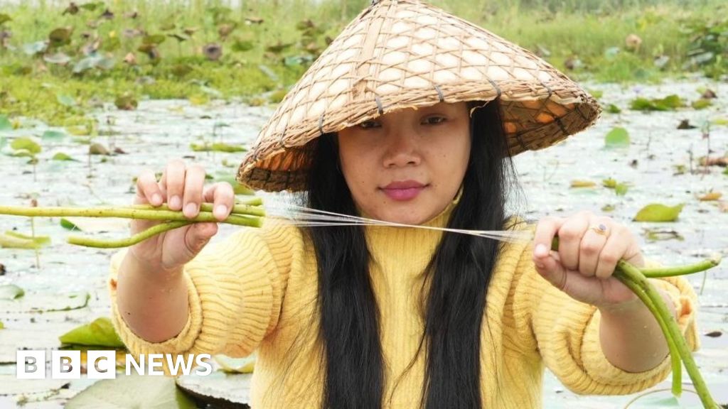 A botanist by profession, Ms Tongbram developed a way to extract silk-like fibres from the lotus stems and now leads a team of 30 women in her village who spin the threads into a yarn and weaves them into unique scarves and garments.